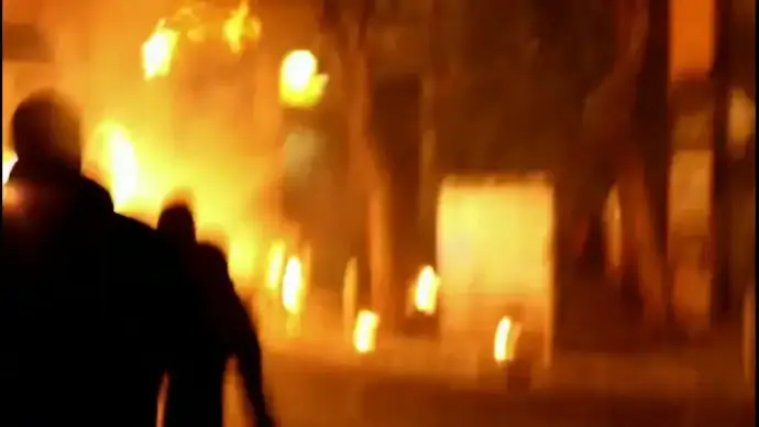 riots fighting against police in city