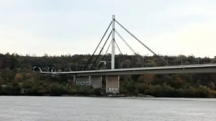 steel structure bridge from car view