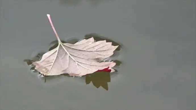 closeup of fallen leaf floating on water surface