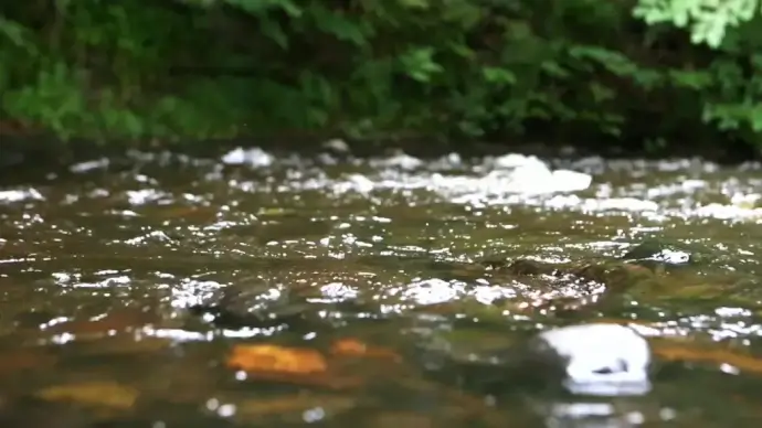 clip of wild salmon swimming under stream