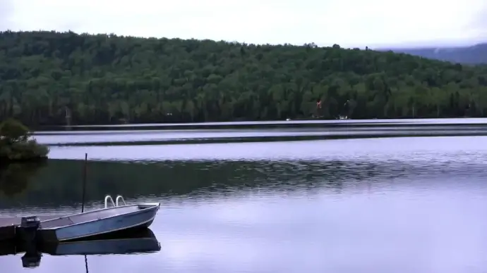 small boat on calm lake