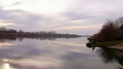 peaceful empty river scene at dusk