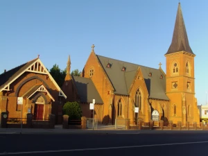 early morning light on presbyterian church in bathurst new south wales