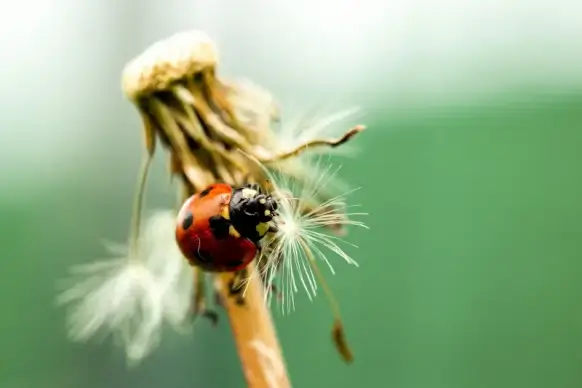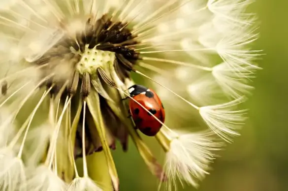 nature picture closeup ladybug perching on dandelion