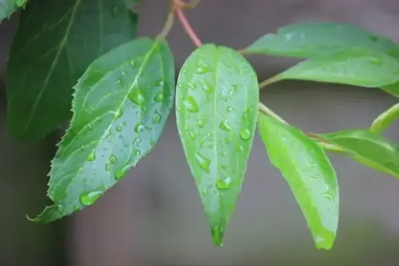 green leaves and drops of water