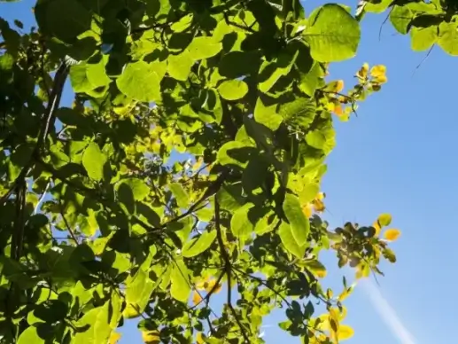 leaves on tree over blue sky 2