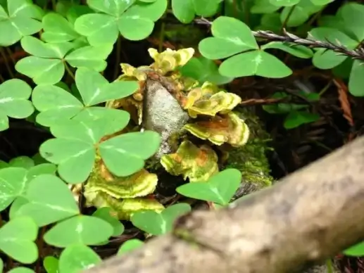 Mossy log with clover