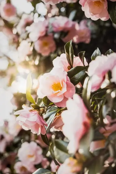 nature scenery picture elegant contrast camellia blossom