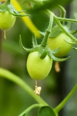 small green tomatos on vine