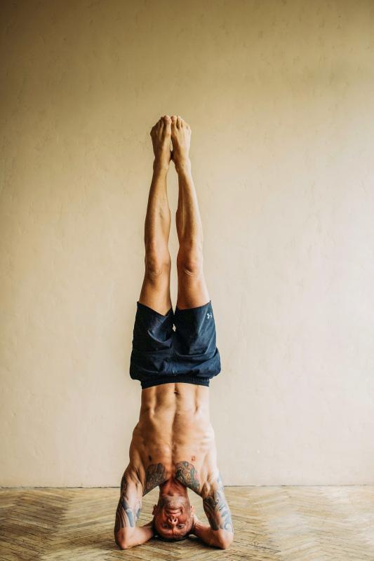 yoga lifestyle picture realistic man upside down