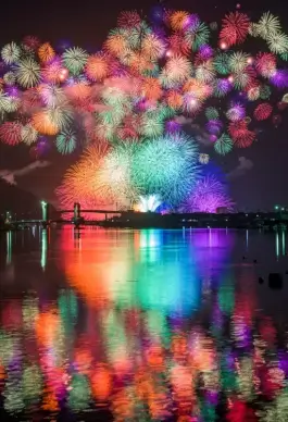 festive picture beautiful fireworks reflection scene