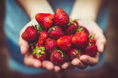 hand holding strawberries backdrop picture elegant closeup