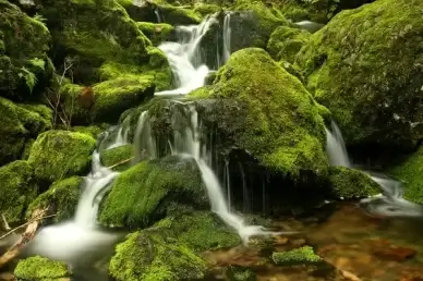 mountain stream and moss