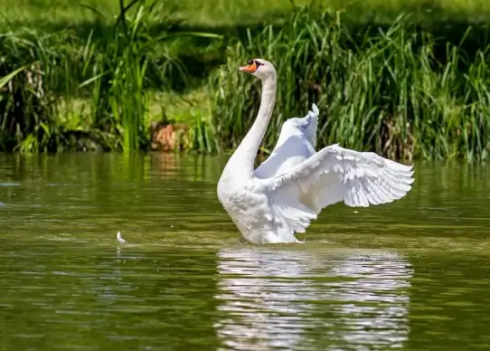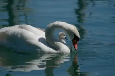 wild nature picture swimming swans calm lake