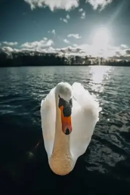 wild nature picture contrast swimming swan scene