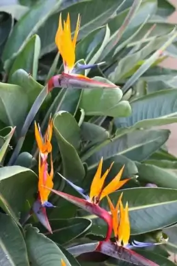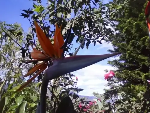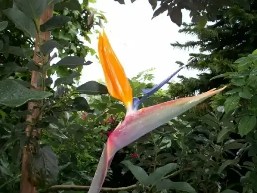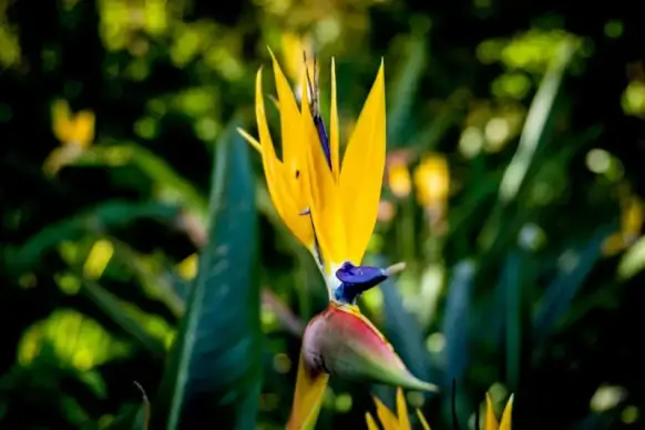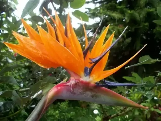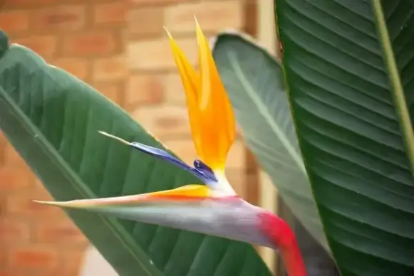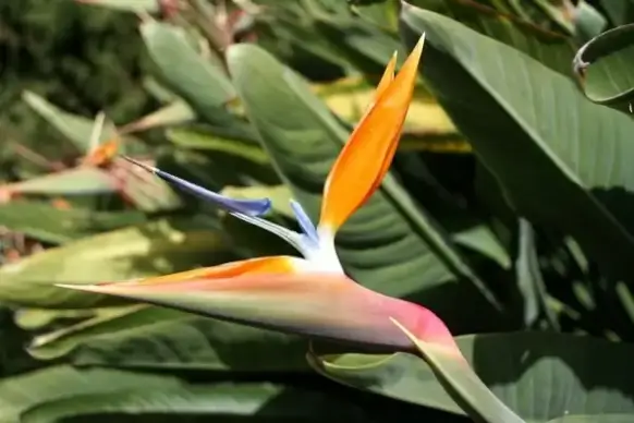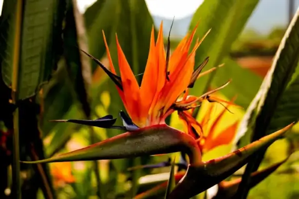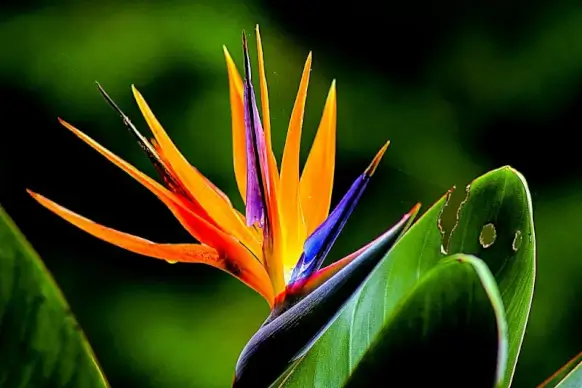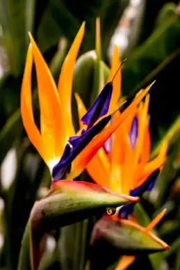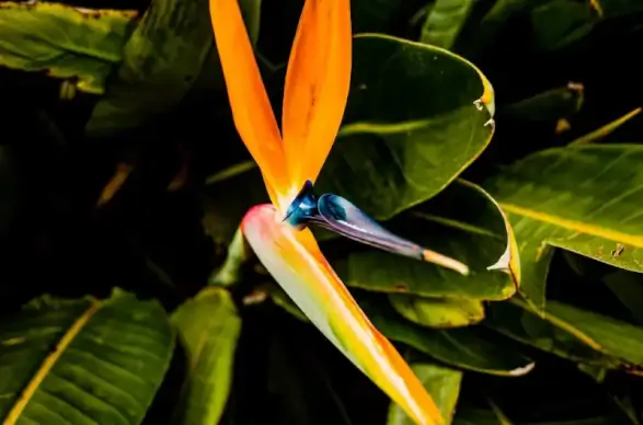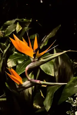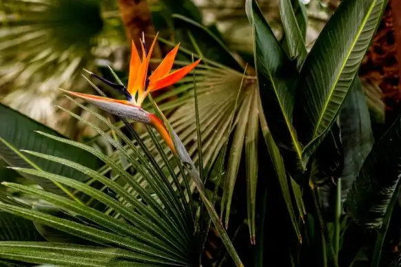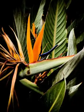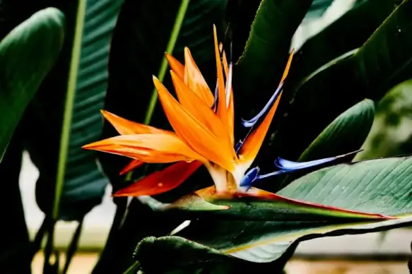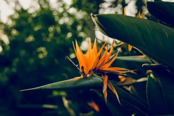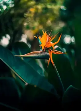 nature picture elegant blooming Bird of paradise flower leaves scene