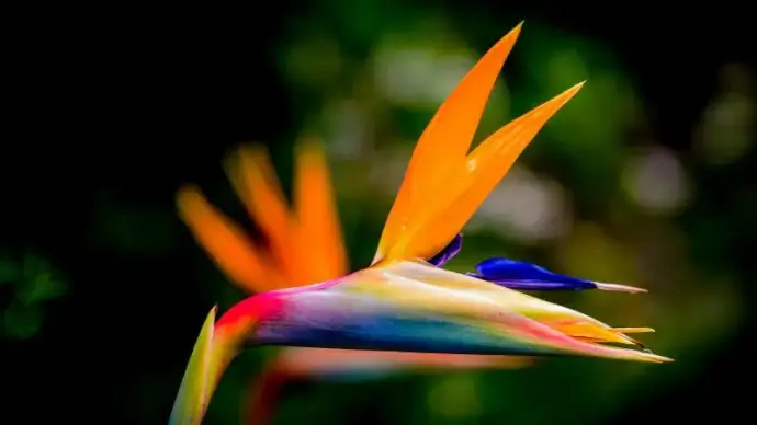 Bird of paradise flower backdrop elegant dark contrast closeup