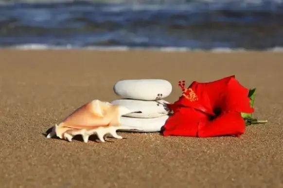stones and flower in sand