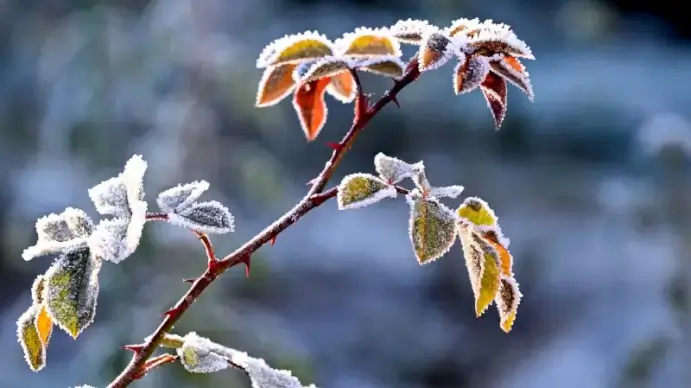 winter nature picture closeup frozen leaves