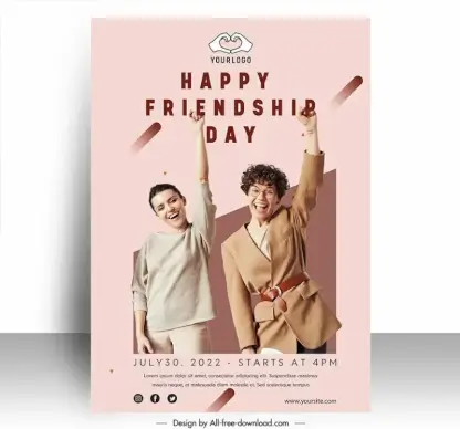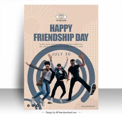 landing page happy friendship day template dynamic excited friends raising hands sketch modern realistic