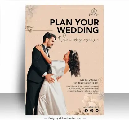 wedding poster template dynamic happy couple flowers
