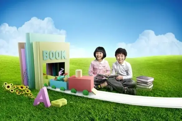the grass painting scenery little girl psd layered