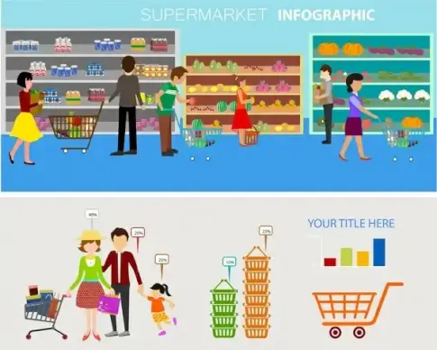 supermarket infographics design customers and food display style