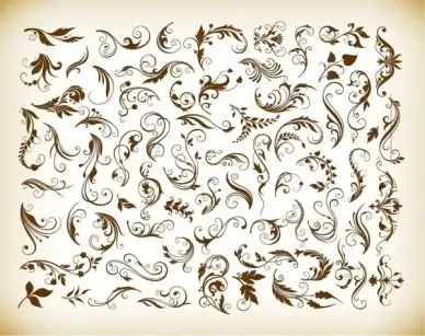 decorative swirl floral pattern elements vector graphics set