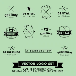 barbershop with couture and dental vector logos
