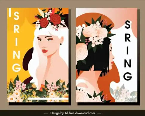spa beauty banner templates collection handdrawn lady faces flowers