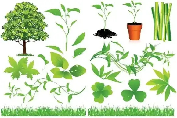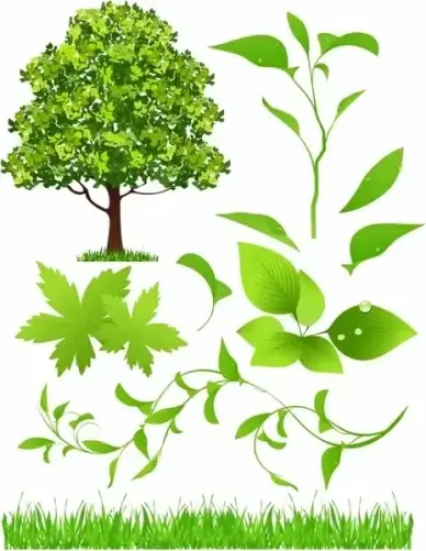 ecological design elements green leaf tree grass sketch