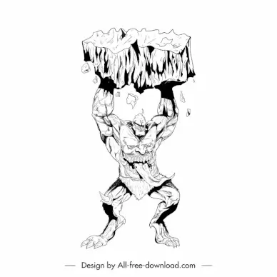 earthshaker icon dynamic black white handdrawn cartoon character sketch