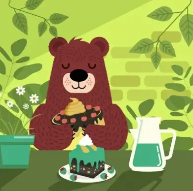 break time background bear cakes icons cartoon design