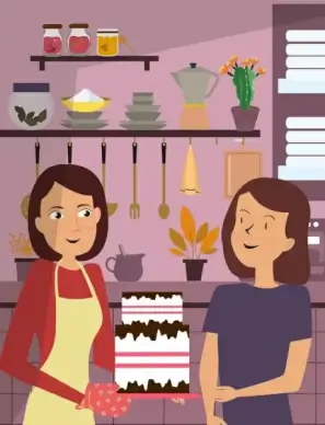 pastry work background women cake icons cartoon design