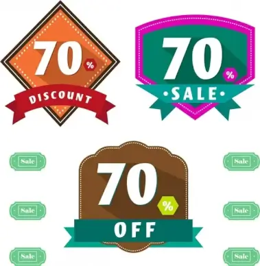 sale tag templates colored flat symbols sketch