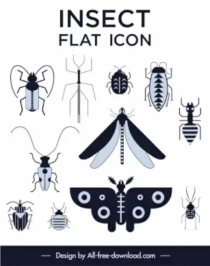 insects species icons black white flat sketch