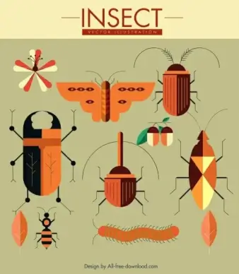 insects species icons colorful flat sketch