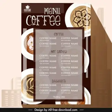 coffee menu template elegant classical brown cups decor