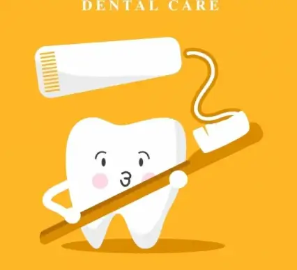 dental banner stylized tooth toothbrush tooth paste icons