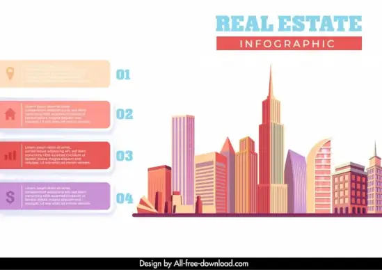 real estate infographic design elements skyscrapers sketch