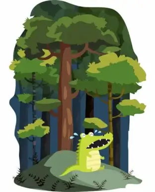 wildlife drawing crocodile birds icons stylized colored cartoon