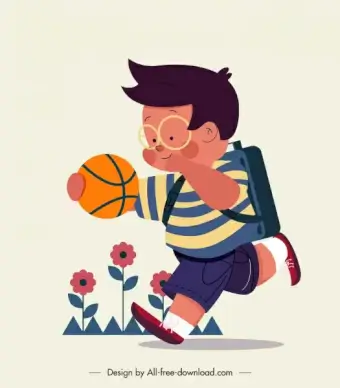 basketball player icons dynamic sketch cartoon characters
