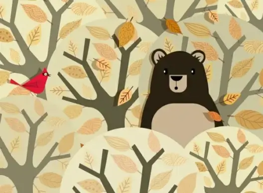 nature background bear bird leaves trees decor