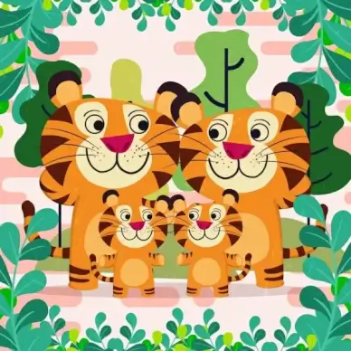 nature background tigers family icons cute cartoon design