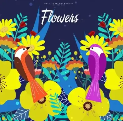 nature background flowers birds icons classical design