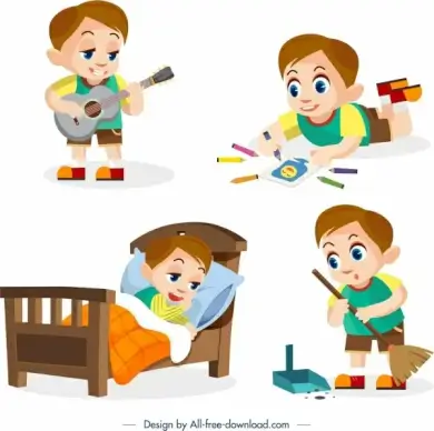 childhood design elements daily activities boy icons design