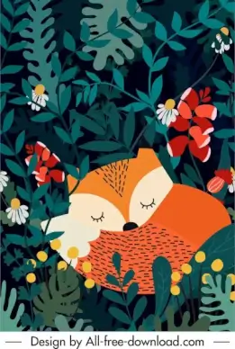 fox icons sleeping running gestures sketch cartoon design