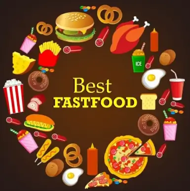 fast food icons design elements various colorful symbols