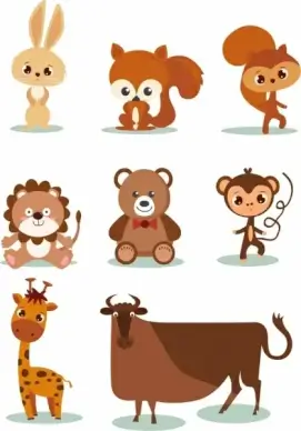 animals icons cute stylized cartoon characters
