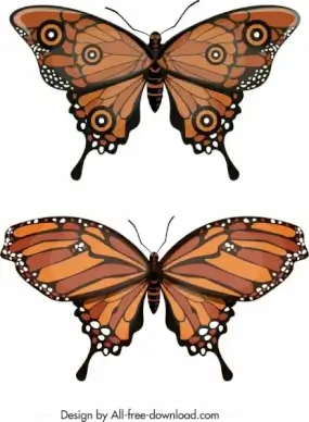 butterfly icons modern brown sketch
